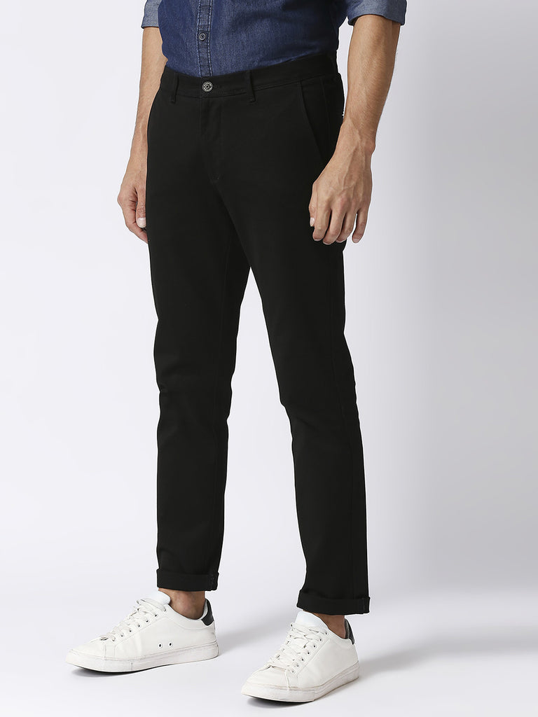 Our signature 027 fit trousers are a modern man’s fit and will quickly become a staple in your wardrobe. Crafted from premium quality cotton dobby lycra, these trousers are super comfortable to wear all day long. Style these with a dark grey shirt and white sneakers for an undeniably modish style statement. * Cotton Dobby Lycra * Slim Tapered * Black Model height is 6'1"