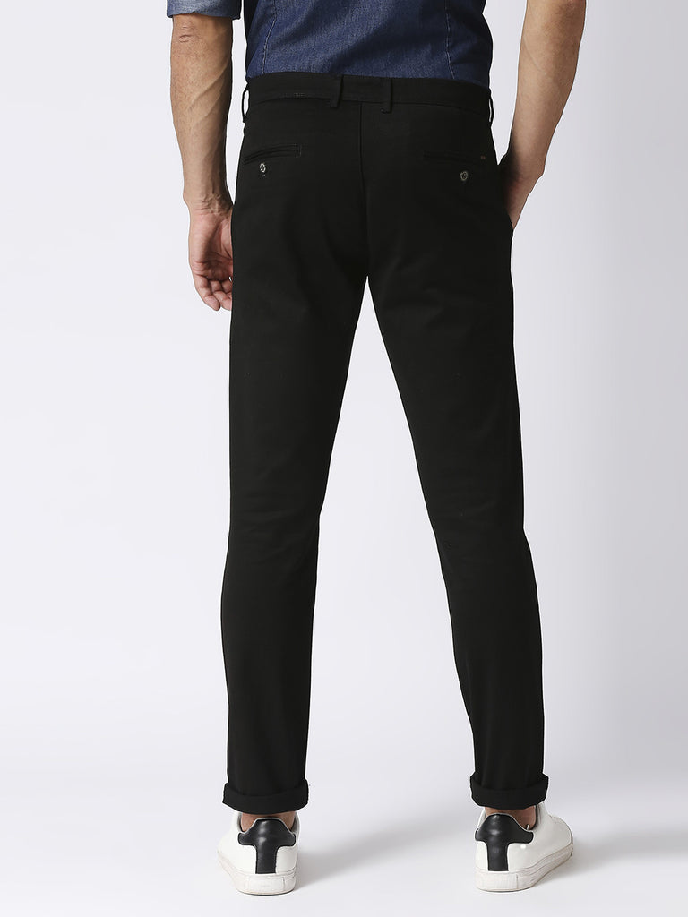 Black Slim Tapered Cotton Dobby Lycra Trouser