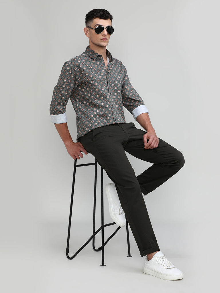 Exclusive Purple Collection Orange Slim Fit Printed Premium Cotton Shirt