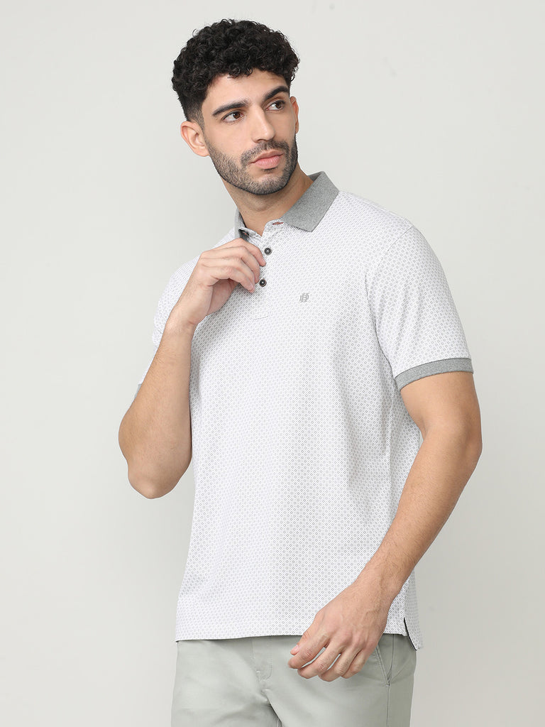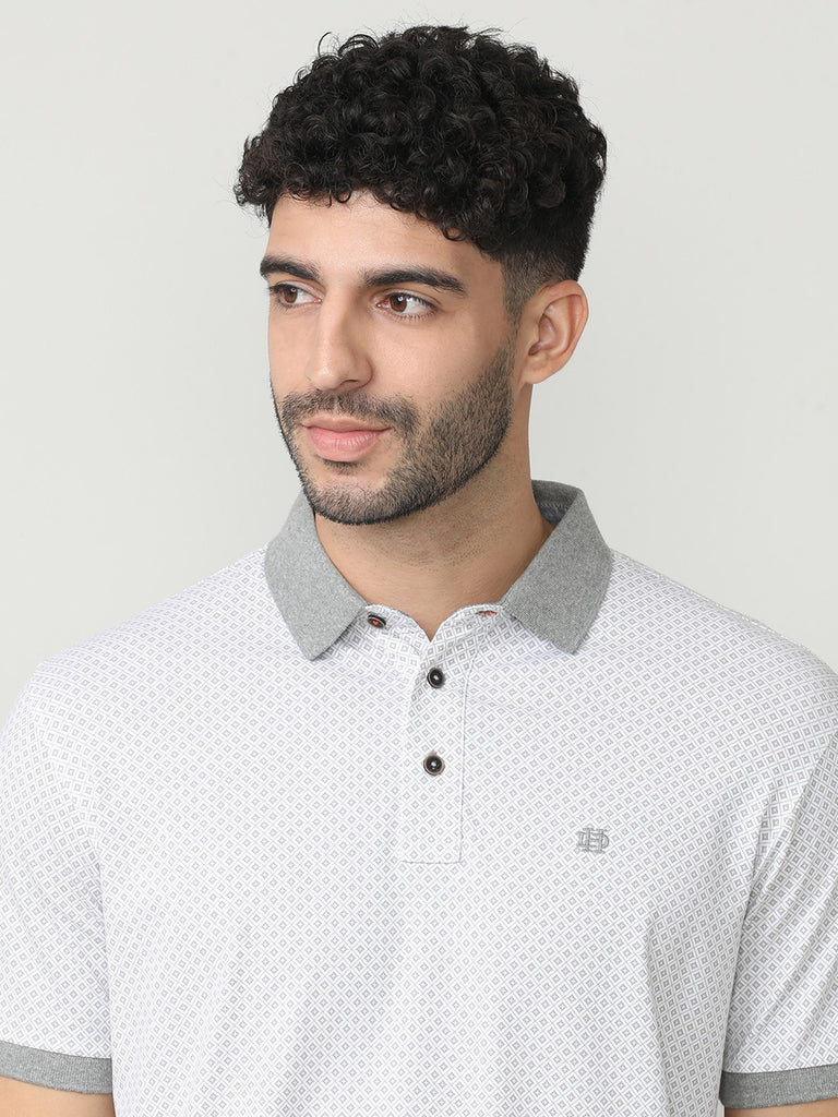 A fun, graphic printed, premium polo t-shirt with contrast tipping on the collar and sleeves is a must-have in a modern man’s wardrobe. Super comfortable for daily wear. Pair it with your favourite coloured chinos and sneakers for an effortless style statement. Premium Cotton Jersey Slim Fit Printed Solid Collar Half Sleeves White