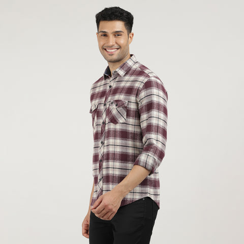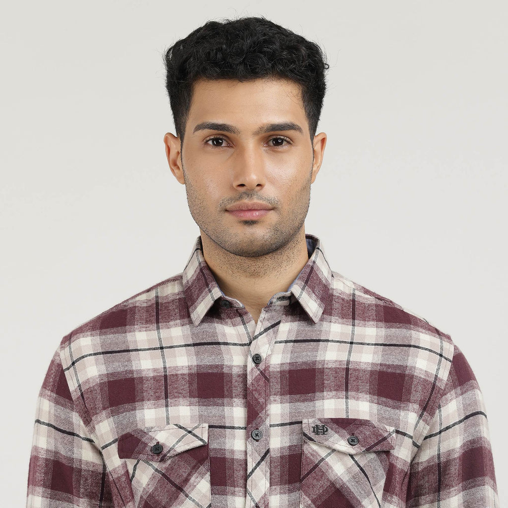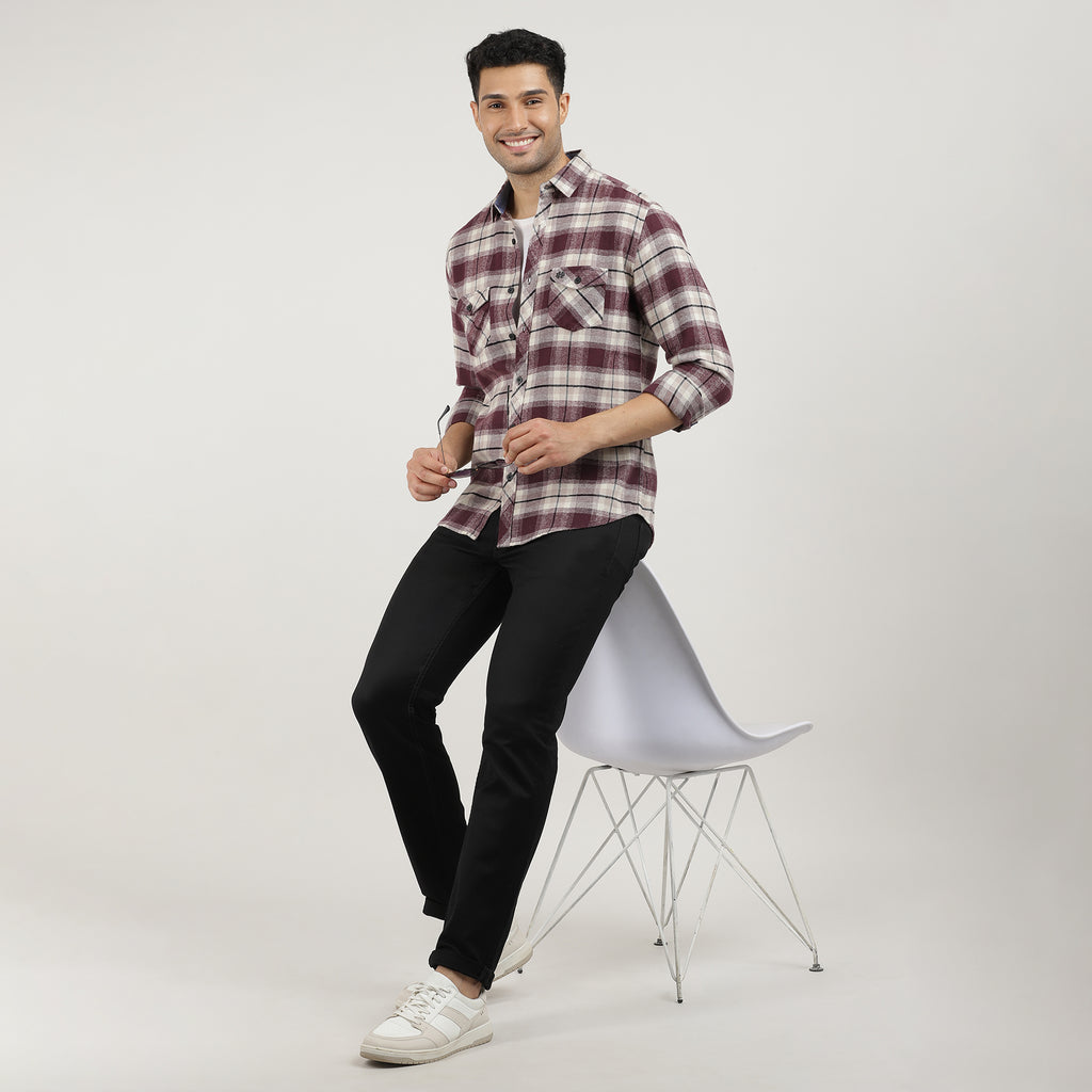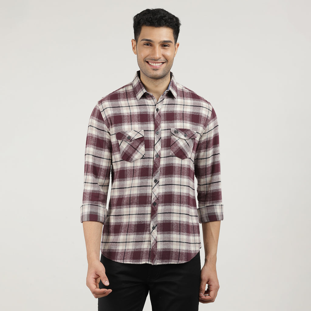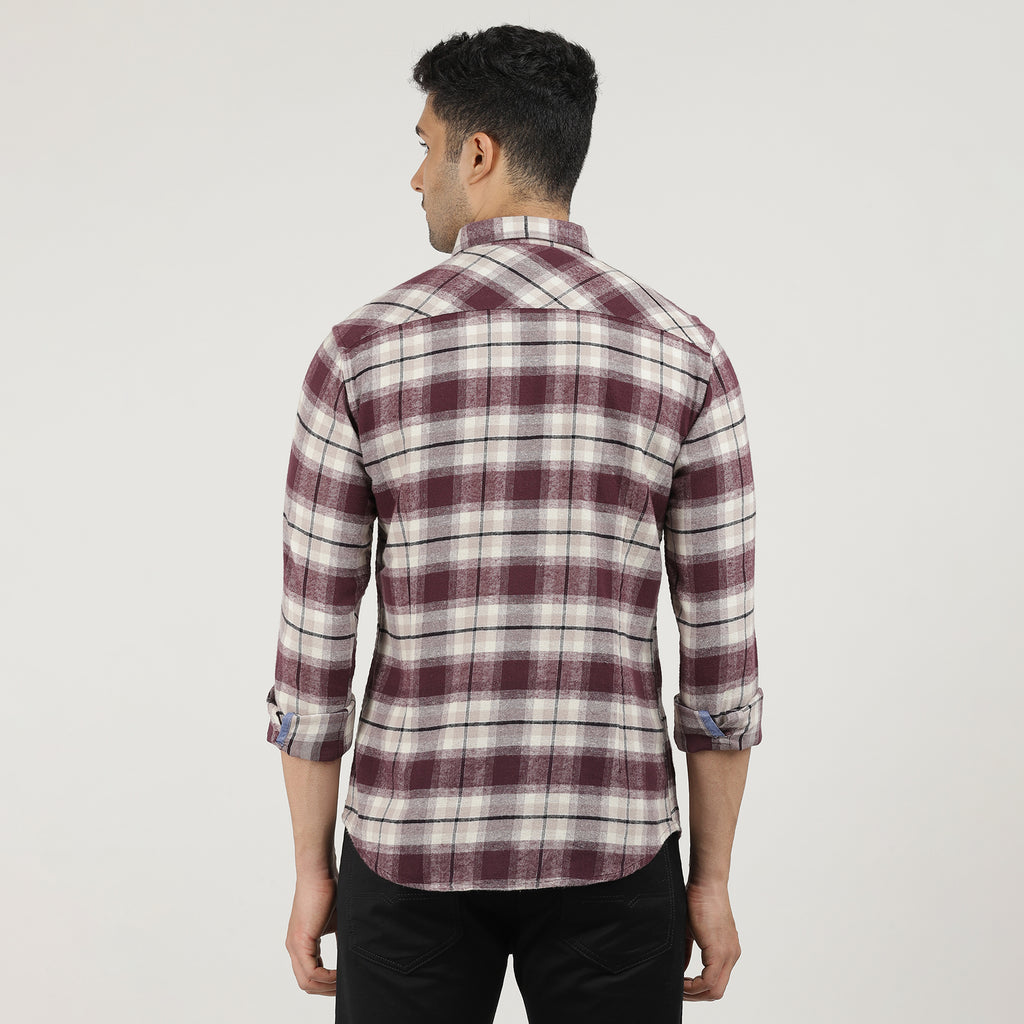 Every wardrobe needs a classic and timeless brushed checked shirt, especially one as versatile as this wine coloured one. Pair it with khakis for the quintessential European look or your favourite pair of denims for a smart casual look.
